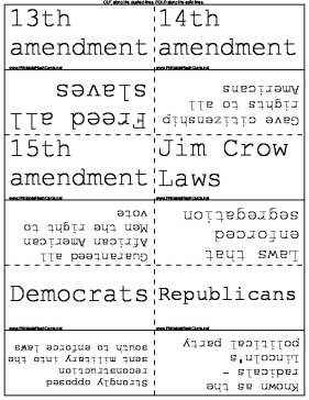 | Reconstruction | Rebirth and building of the nation after the Civil War |